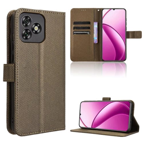 Funda de Cuero con Textura de Diamante para Teléfono Oukitel C53 (Marrón)