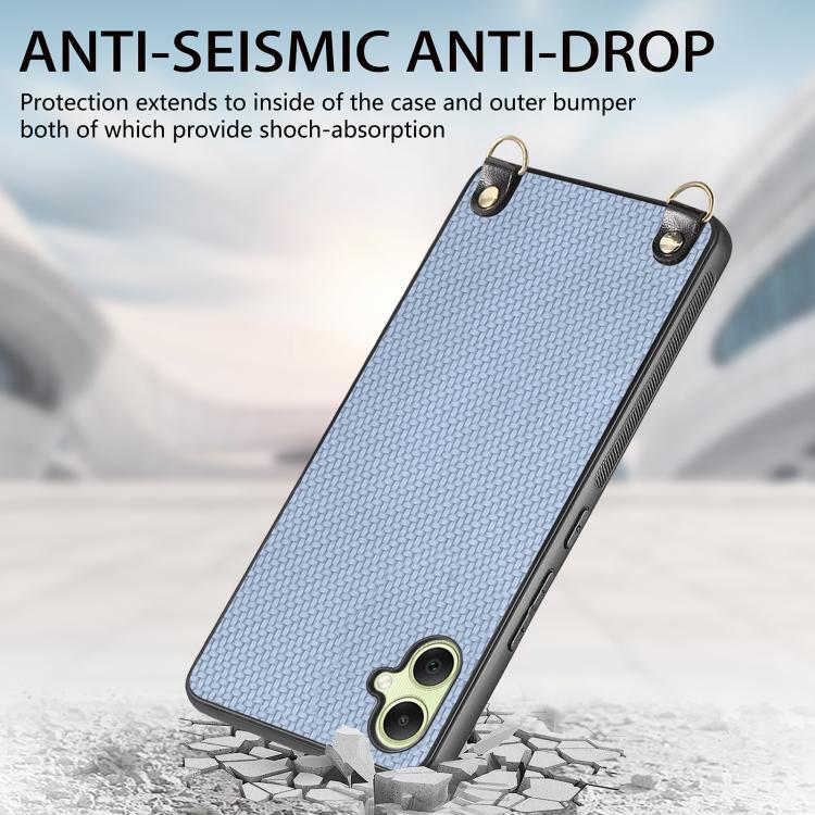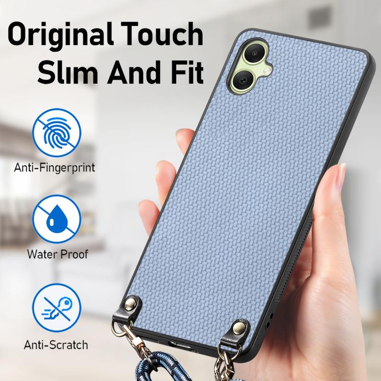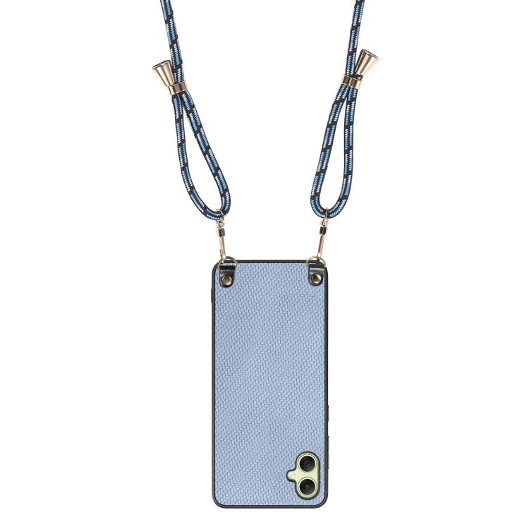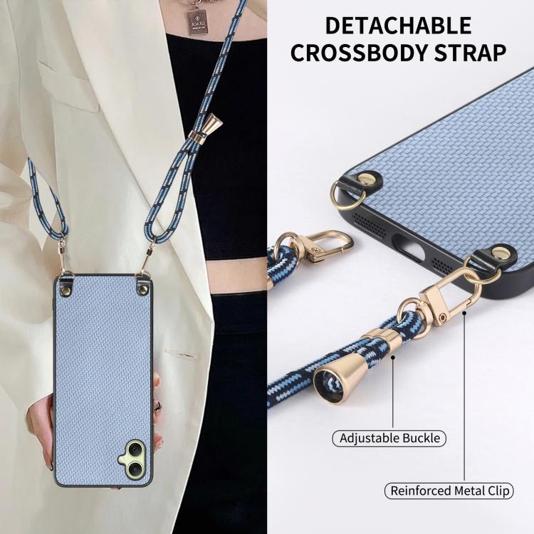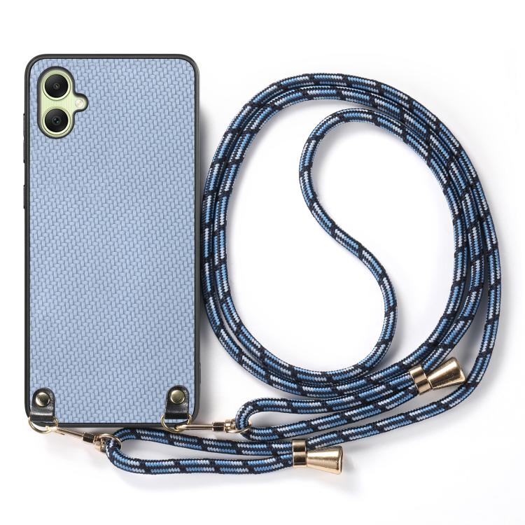 Funda para Samsung Galaxy A05 Cuero Textura Fibra de Carbono con Correa Cruzada (Azul)