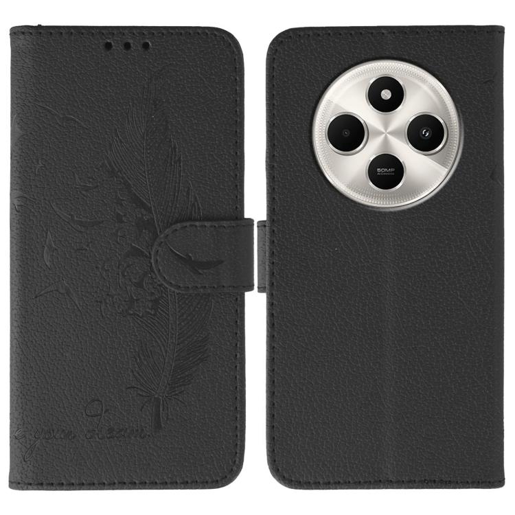 Funda de cuero con textura de lichi y estampado de plumas para Xiaomi Poco C75 4G (negro)