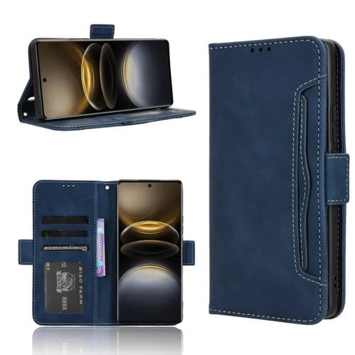 Funda de Piel con Textura de Becerro y Ranuras para Tarjetas para Vivo X100 Ultra 5G (Azul)