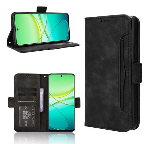 Funda de Piel con Textura de Becerro y Ranuras para Tarjetas para Vivo Y58 5G (Negra)