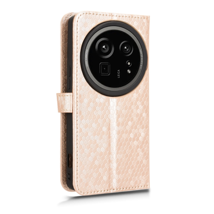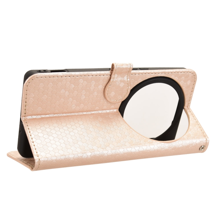 Funda de Cuero Textura Panal para Sharp Aquos R9 Pro Sh-54E (Dorada)