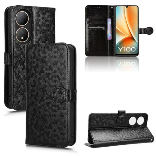 Funda de Cuero con Textura de Puntos En Forma de Panal para Vivo Y100 5G (Negra)