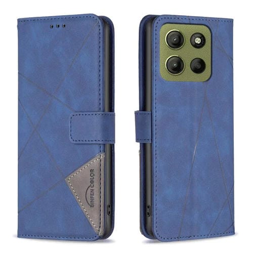 Funda de Cuero Motorola Moto G15 con Textura de Rombos y Hebilla Magnética (Azul)