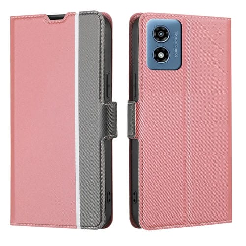 Funda de Cuero con Textura de Sarga y Botones Laterales para Motorola Moto G 5G (2024) (Rosa)