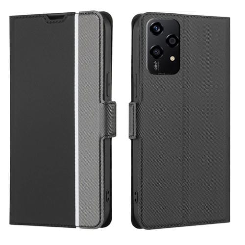 Funda de Cuero con Textura de Sarga y Botones Laterales para Honor 200 Lite 5G (Negro)
