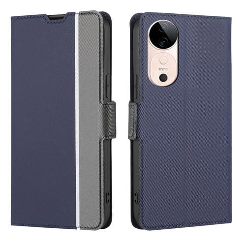 Funda de Cuero con Textura de Sarga y Botones Laterales para Teléfono Vivo S19 (Azul)