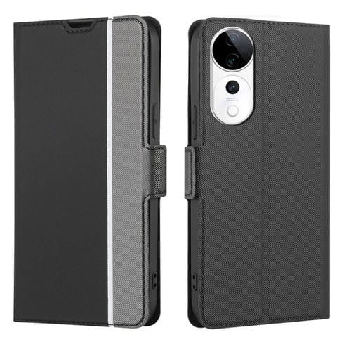Funda de Cuero con Textura de Sarga y Botones Laterales para Teléfono Vivo S19 Pro (Negro)