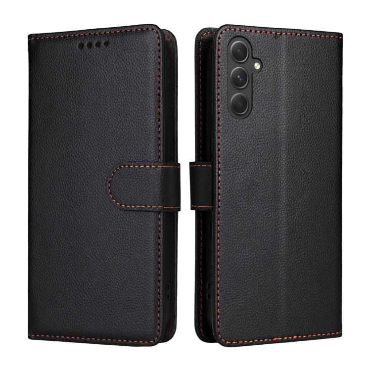 Funda de cuero con textura Litchi para Samsung Galaxy A54 5G, con bloqueo RFID y capacidad para 3 tarjetas (negro)
