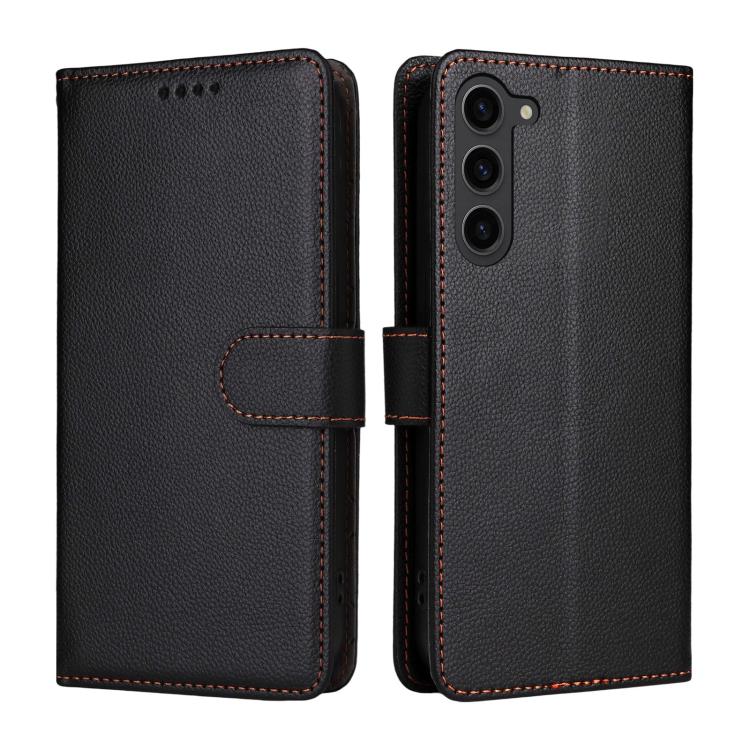 Funda de cuero con textura Litchi para Samsung Galaxy S23+ 5G, con bloqueo RFID y capacidad para 3 tarjetas (negro)