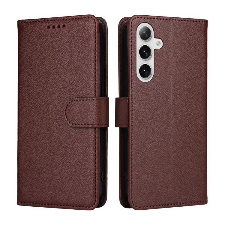 Funda de cuero con textura Litchi para Samsung Galaxy S25/S24 5G, con bloqueo RFID y capacidad para 3 tarjetas (marrón)