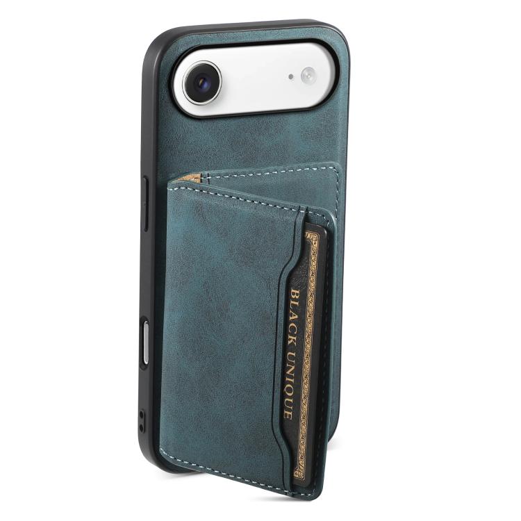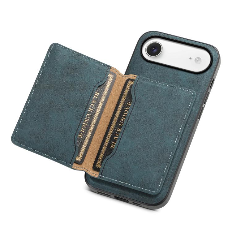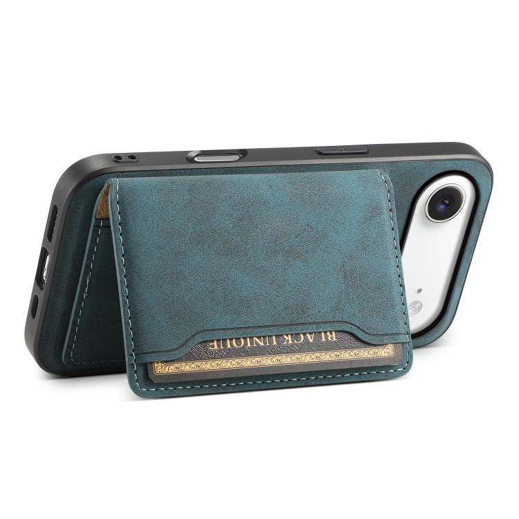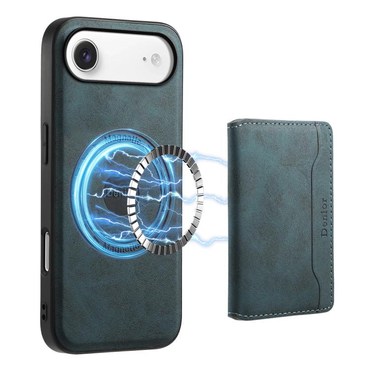 Funda de cuero con textura retro para iPhone Air Denior D13, con tarjetero MagSafe (azul)