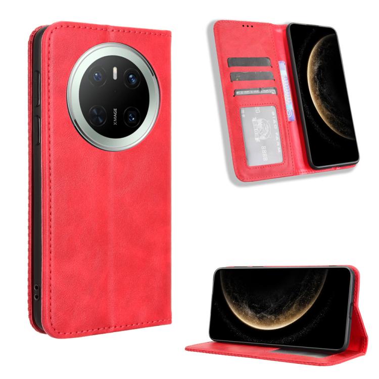 Funda de Cuero Huawei Mate 70 con Textura Retro y Hebilla Magnética (Rojo)