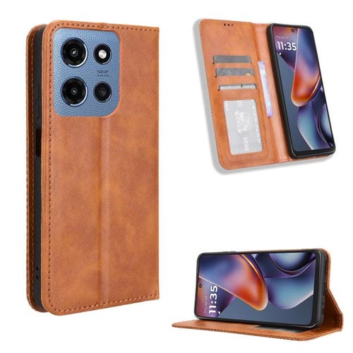 Funda de Cuero Motorola Moto G 5G 2025 con Textura Retro y Hebilla Magnética (Marrón)