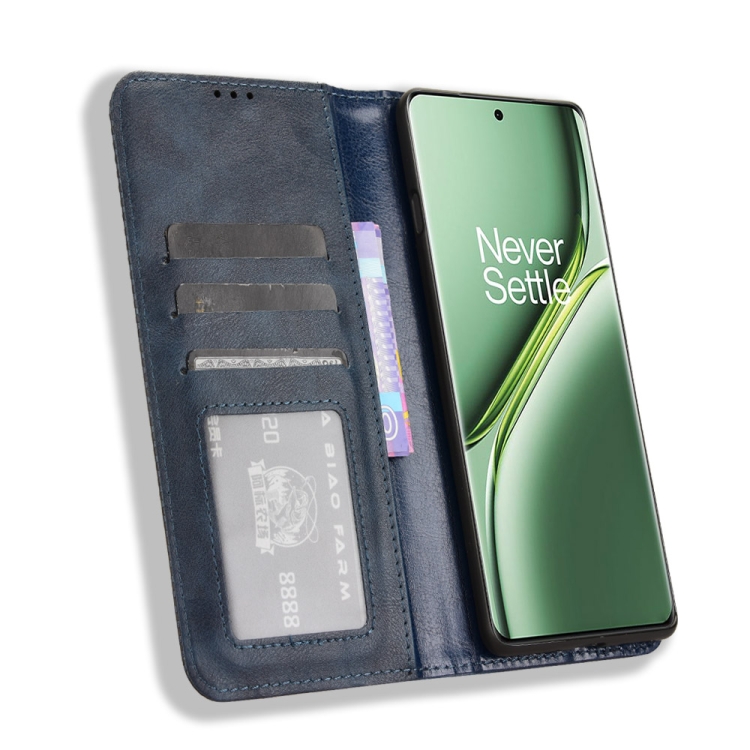 Funda de Cuero con Textura Retro y Hebilla Magnética para OnePlus Ace 3 Pro (Azul)