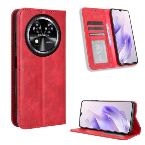 Funda de Cuero Retro con Hebilla Magnética para Oukitel C37 (Rojo)