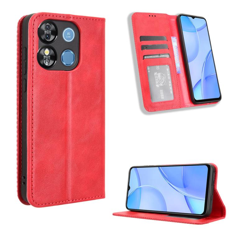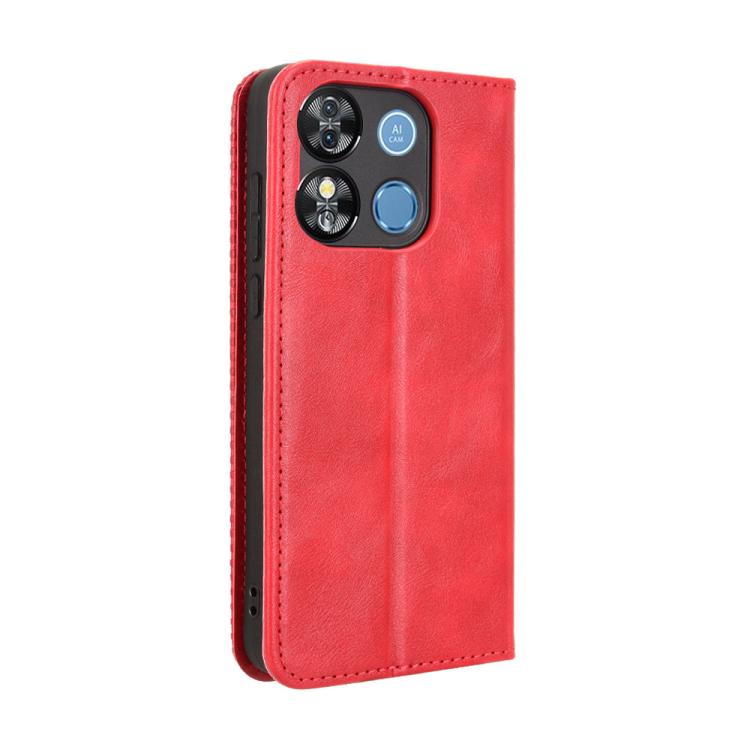 Funda de Cuero Oukitel C57S con Textura Retro y Hebilla Magnética (Roja)