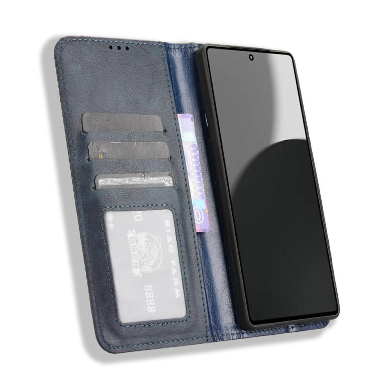Funda de Cuero para Sharp Aquos R9 Pro con Textura Retro y Hebilla Magnética (Azul)