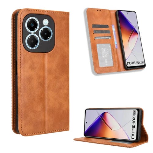 Funda de Cuero Textura Retro con Hebilla Magnética para Infinix Note 40X 5G X6838 (Marrón)