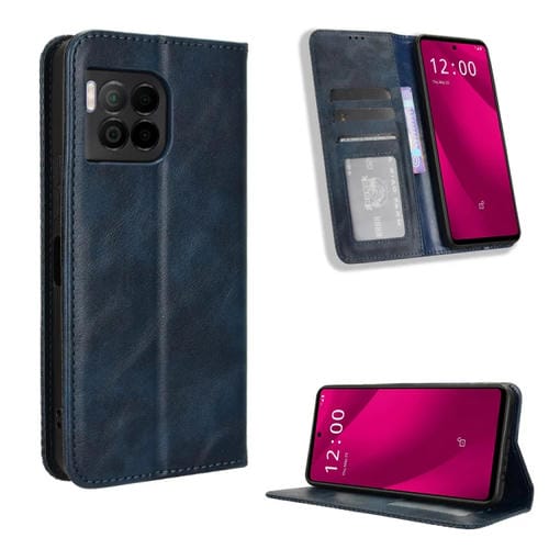 Funda de Cuero Textura Retro Hebilla Magnética para T-Mobile Revvl 7 Pro 5G (Azul)