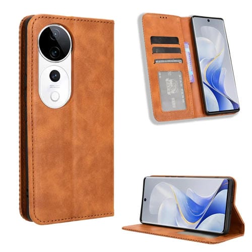 Funda de Cuero con Textura Retro y Hebilla Magnética para Vivo S19 Pro 5G/V40 5G (Marrón)