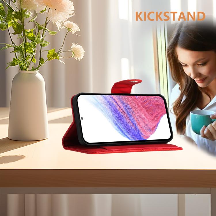 Funda de cuero con textura rómbica y cordón para Samsung Galaxy M56 5G (rosa y rojo)