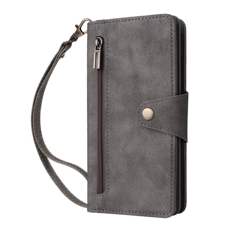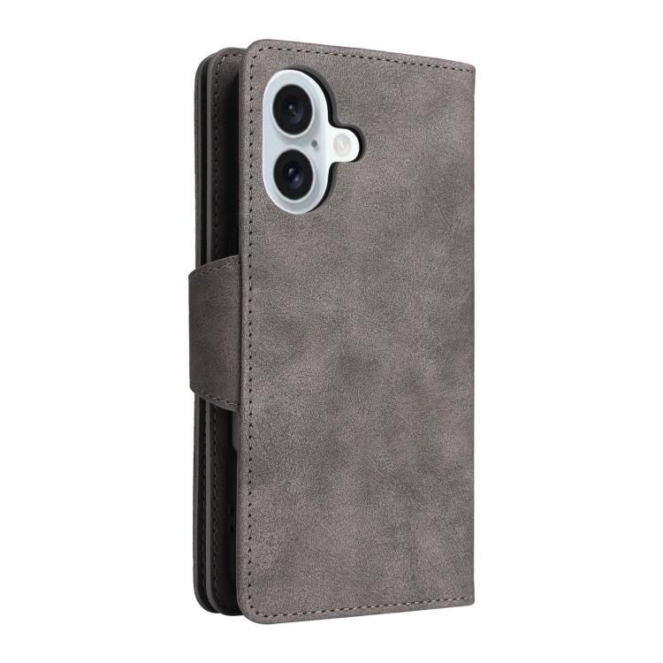 Funda de cuero con tres pliegues y hebilla de remache para iPhone 17 (gris)