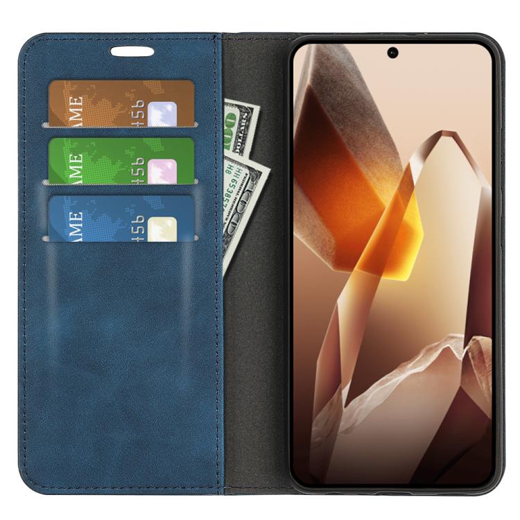 Funda de Cuero con Ventosa Magnética para OnePlus 13 Retro-Skin (Azul Oscuro)