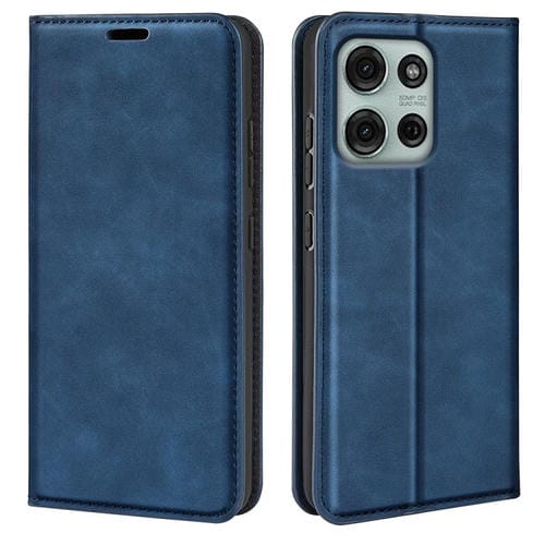Funda de Cuero con Ventosa Magnética para Motorola Moto G75 5G Retro-Skin (Azul Oscuro)