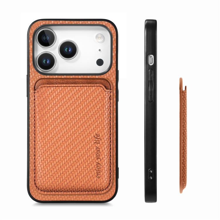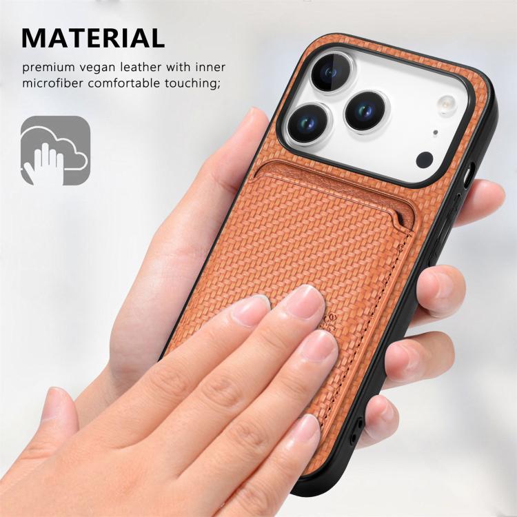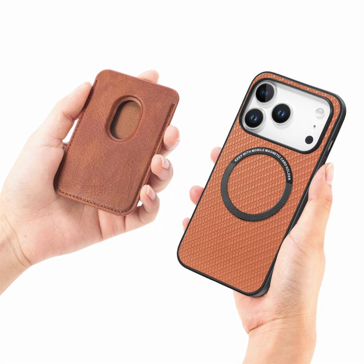 Funda de cuero de fibra de carbono con tarjetero Magsafe para iPhone 17 Pro Max (marrón)