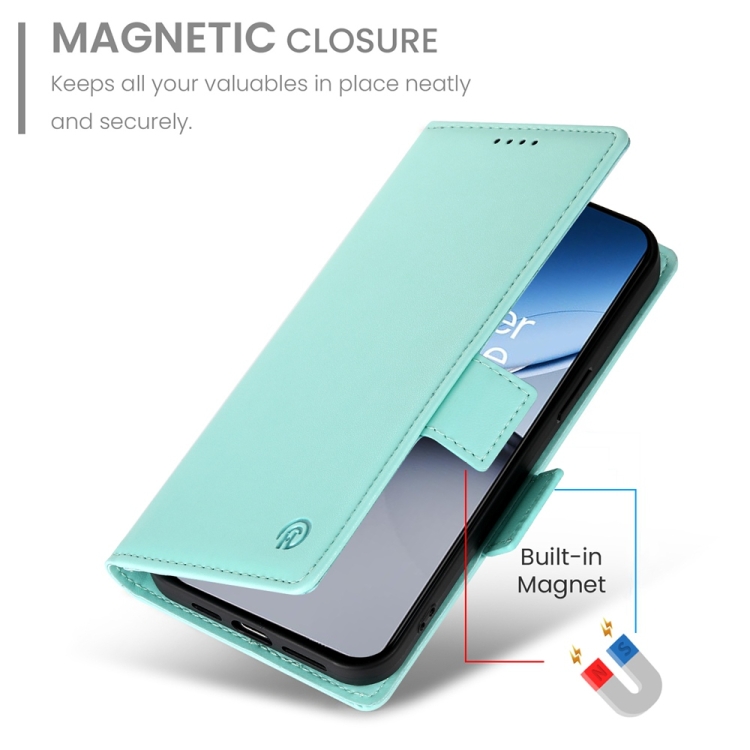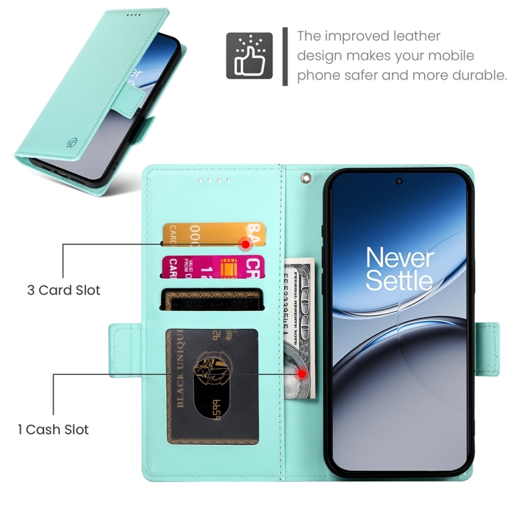 Funda de Cuero Esmerilado con Hebilla Lateral Magnética para OnePlus Nord 4 5G (Verde Menta)