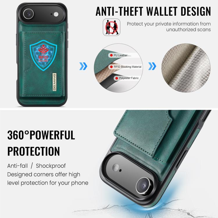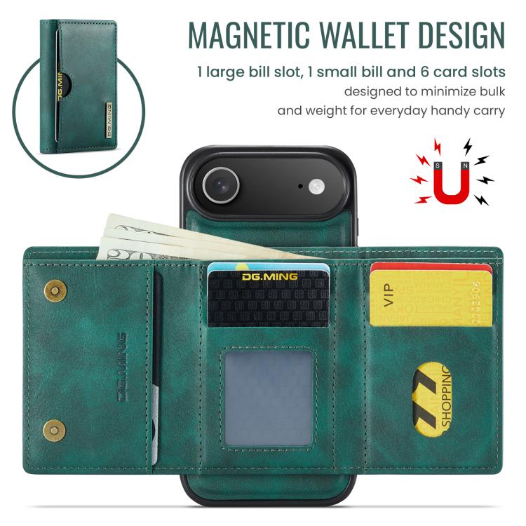 Funda de cuero extraíble con tres pliegues RFID para iPhone Air DG.MING M6 Series (verde)