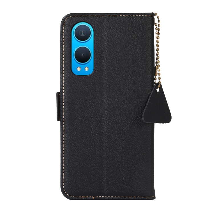 Funda de Cuero Genuino Rfid con Imán Lateral Tj para OnePlus Ce4 Lite (Negro)