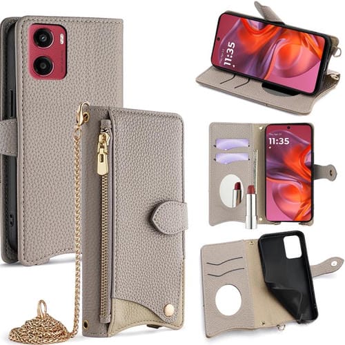 Funda de Cuero Lichi con Diseño Cola de Pez y Cadena Cruzada para Motorola Moto G05 (Gris)