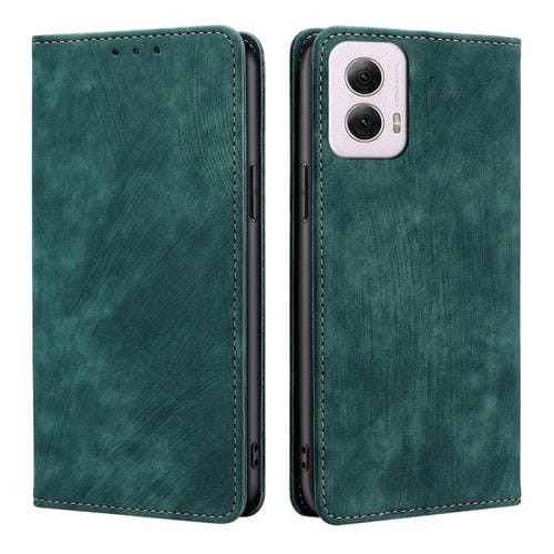 Funda de Cuero Magnética con Cepillo Antirrobo RFID para Motorola Moto G Power 5G (2024) (Verde)