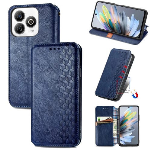 Funda de Cuero Magnética ZTE Blade A75 4G Diseño Cuadrícula Cúbica (Azul)