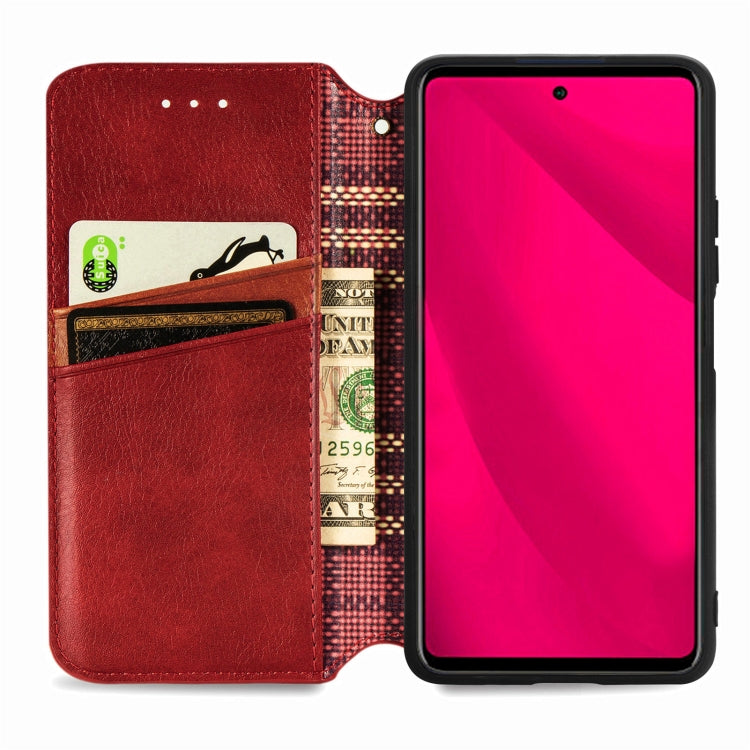 Funda de Cuero Magnética con Rejilla Cúbica Prensada para Infinix Smart 9 (Roja)