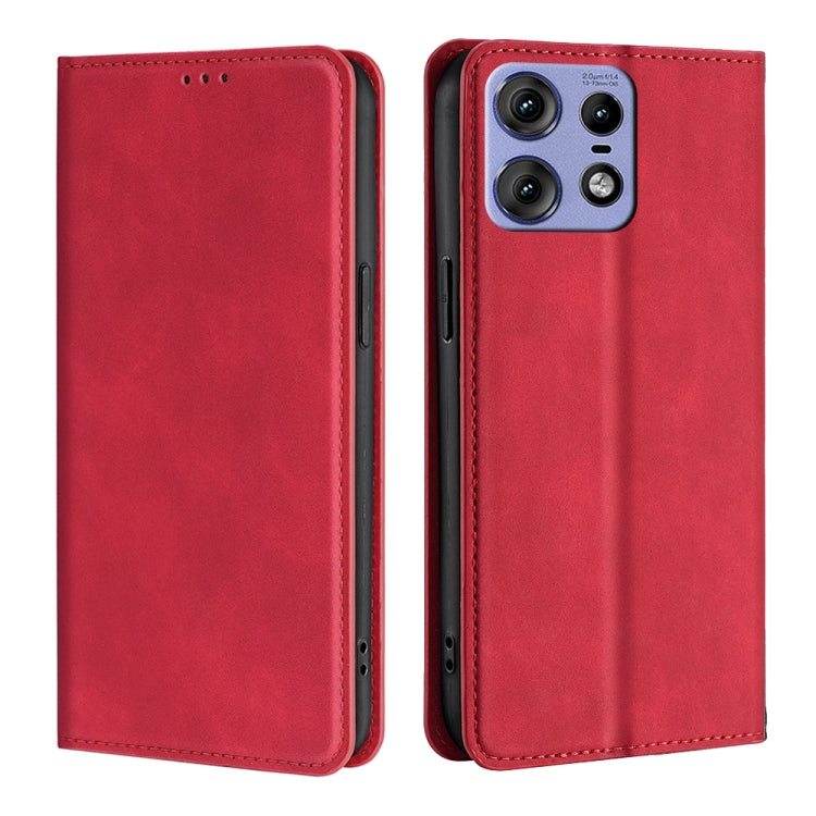 Funda de Cuero Magnética con Tacto de Piel para Motorola Edge 50 Pro 5G (Roja)
