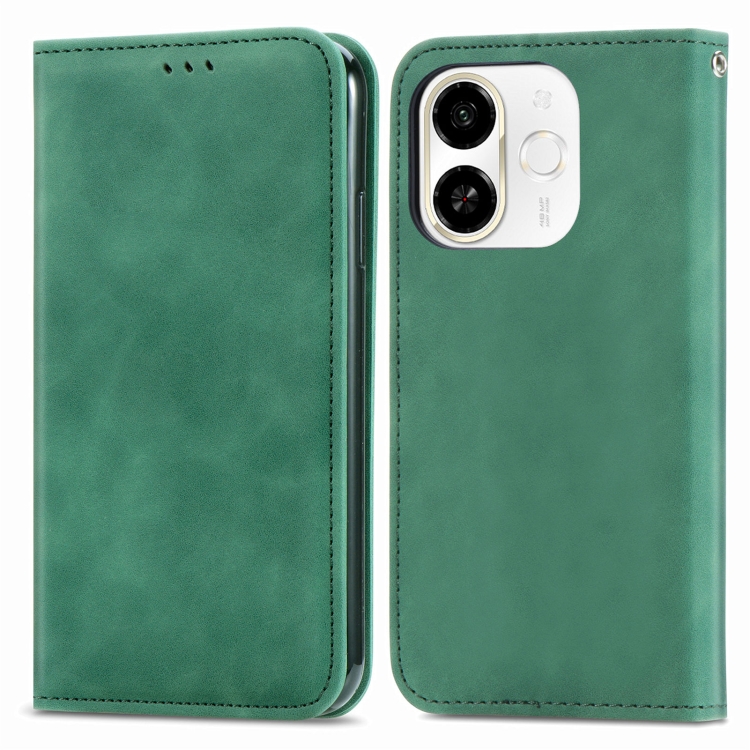Funda de Cuero Magnética para Tecno Spark 30C 5G con Tacto Retro (Verde)