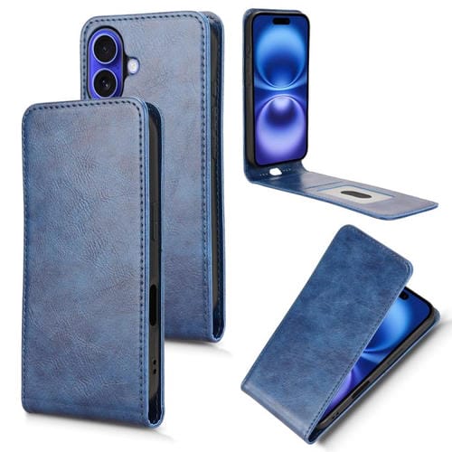 Funda de Cuero Magnética con Tapa Vertical para iPhone 16 Plus (Azul)