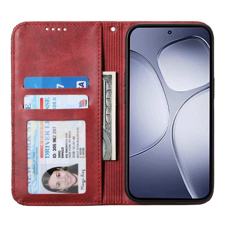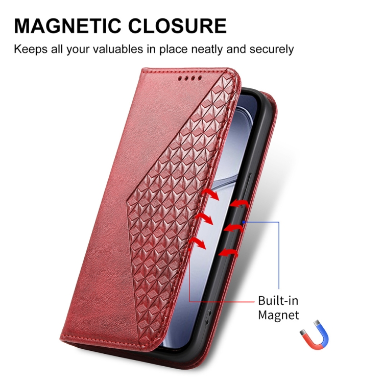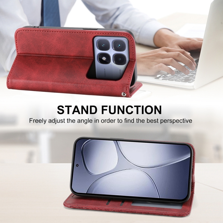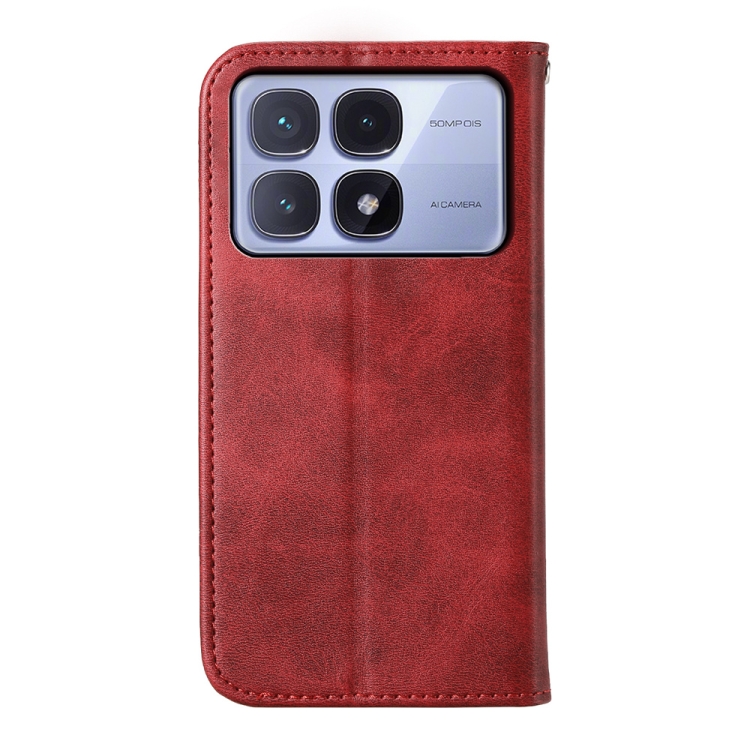 Funda de Cuero Magnética con Textura de Becerro y Cuadrícula Cúbica para Redmi K70 Ultra (Rojo)