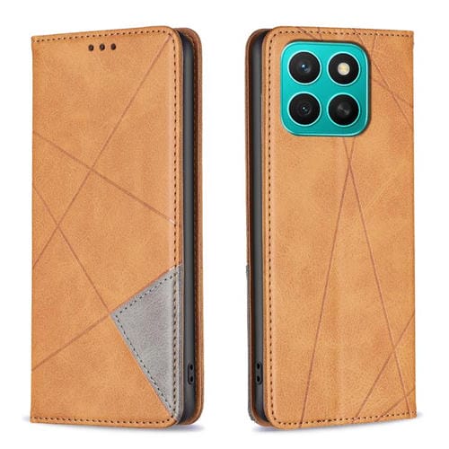 Funda de Cuero Magnética con Textura de Rombos para Honor X8C 4G (Amarillo)