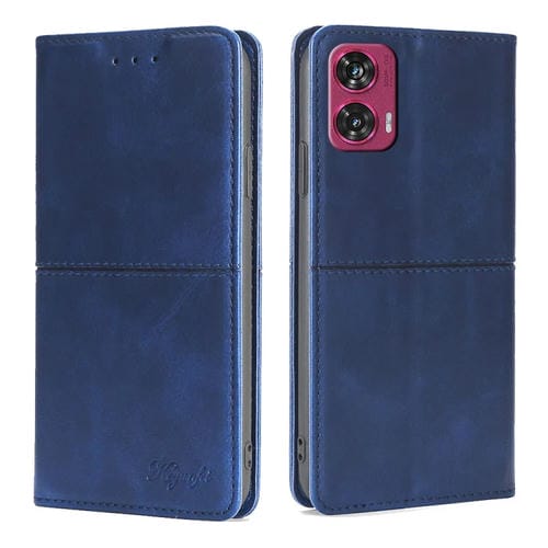 Funda de Cuero Magnética con Textura de Vaca para Motorola Edge 50 Fusion 5G (Azul)