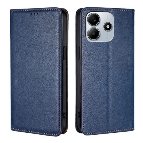 Funda de Cuero Magnético con Acabado Brillante y Aceite Sólido para Redmi Note 14 5G (Azul)
