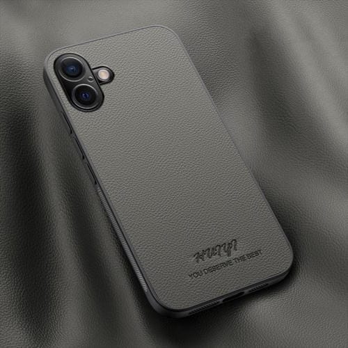 Funda de Cuero Magnética Huiyi para iPhone 16 Plus (Gris)
