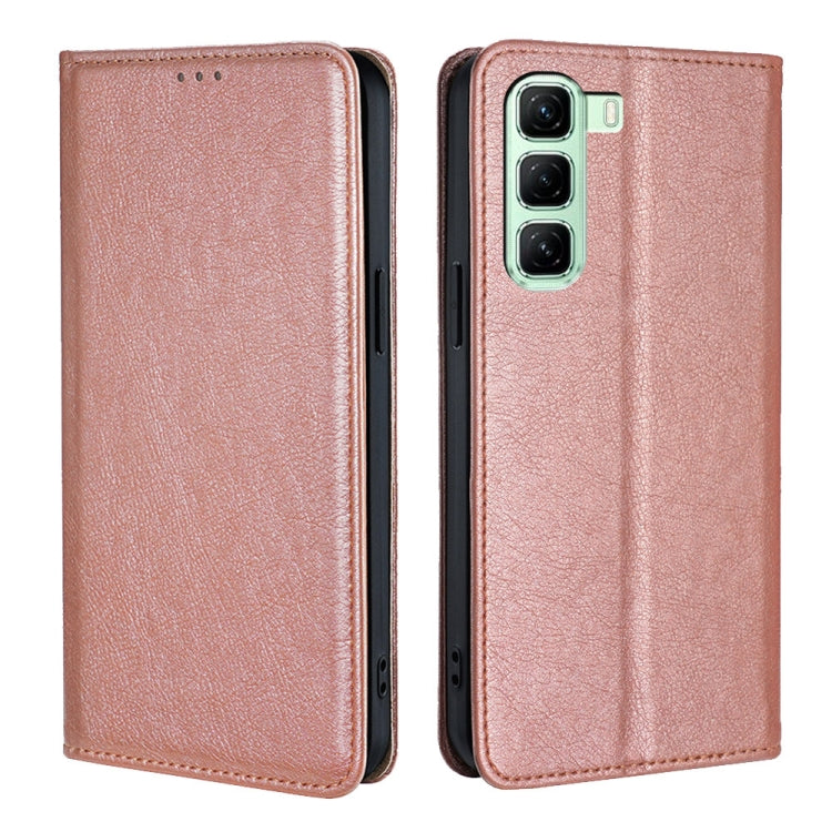 Funda de Cuero Magnética para Infinix Hot 50 4G con Acabado Brillante y Aceite (Oro Rosa)