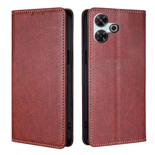 Funda de Cuero Magnético con Acabado Brillante y Aceite Sólido para Redmi 13 4G (Marrón)