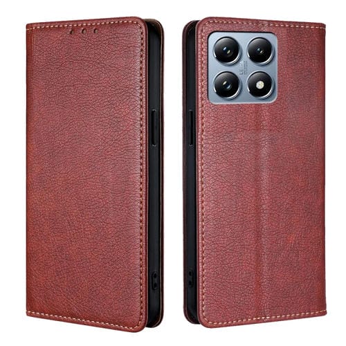 Funda de Cuero Magnética para Teléfono Xiaomi 14T Pro 5G con Acabado Brillante y Color Sólido (Marrón)