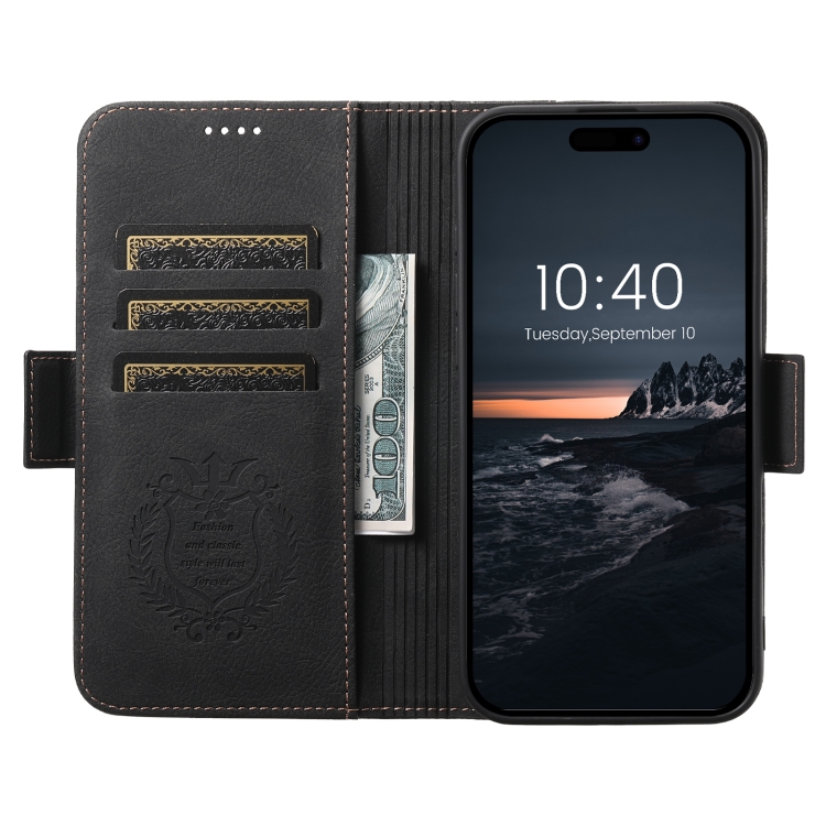 Funda de Cuero Multifuncional Suteni J07 con Tapa Horizontal y Función Magsafe para iPhone 16 (Negro)