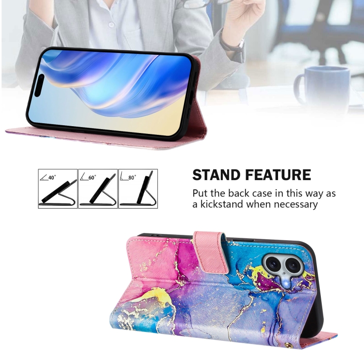 Funda de Cuero para iPhone 16 Diseño de Dibujo Artístico Mármol Colorido